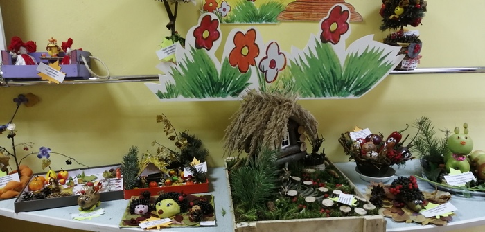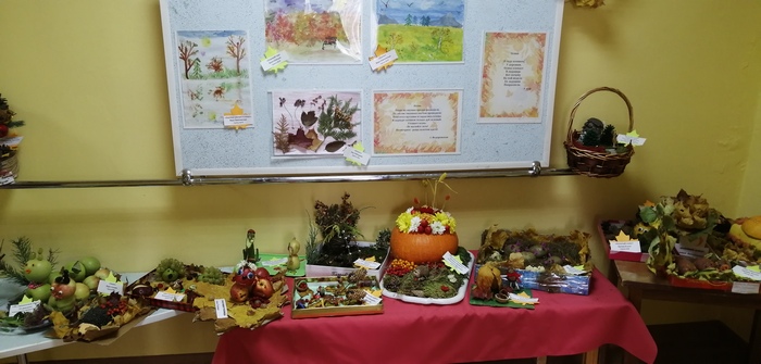 Осенью в дошкольном учреждении состоялась выставка творческих работ "Осени дары". На выставке было представлено более тридцати работ, выполненных в различных техниках.