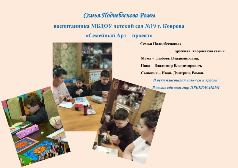 - Семью Ромы, Ивана, Дмитрия Поднебесновых: Любовь Владимировну, Владимира Владимировича, авторов проект «Семейный арт- проект»- Победитель фестиваля;