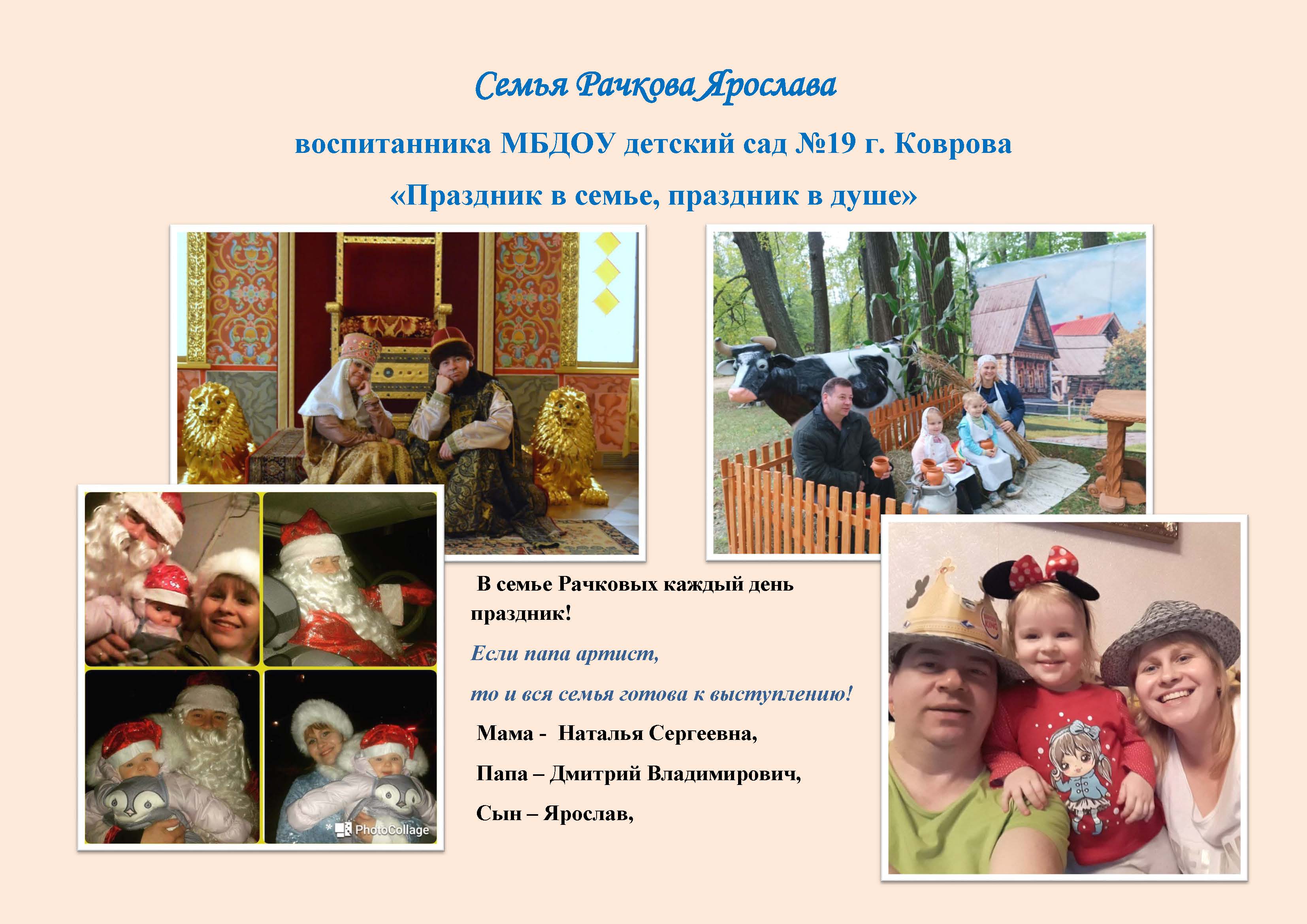 - семью Ярослава, Анны Рачковых : Дмитрия Владимировича, Наталью Сергеевну- творческий проект «Праздник в семье, праздник в душе»- лауреаты фестиваля;