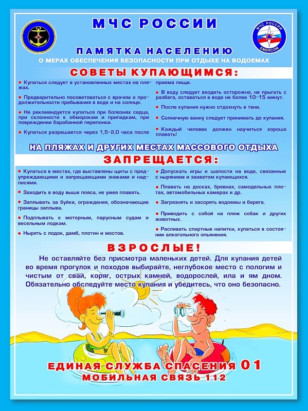 Правила безопасного поведения людей на водных объектах в период купального сезона