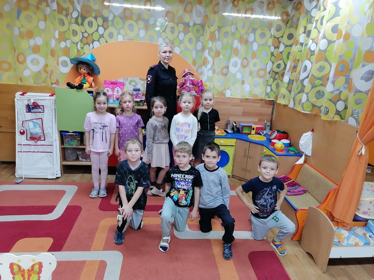 Юлия Алексеевна рассказала ребятам групп №7 "Веселые человечки" и №9 "Солнышко" о том, как правильно вести себя на проезжей части.