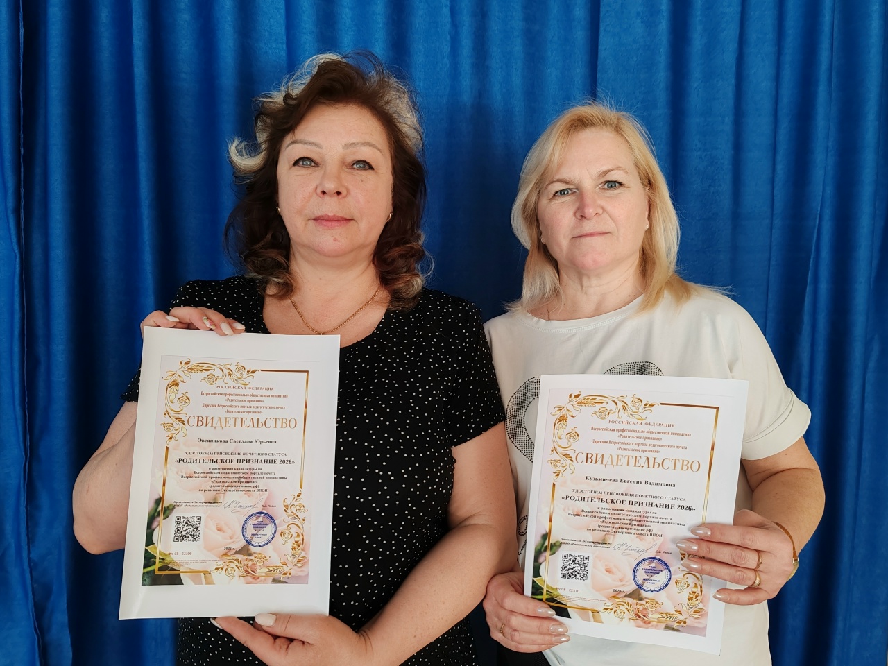 Кузьмичева Евгения Вадимовна и Овсяникова Светлана Юрьевна утостоены присвоения почетного статуса " Родительское признание -2026"